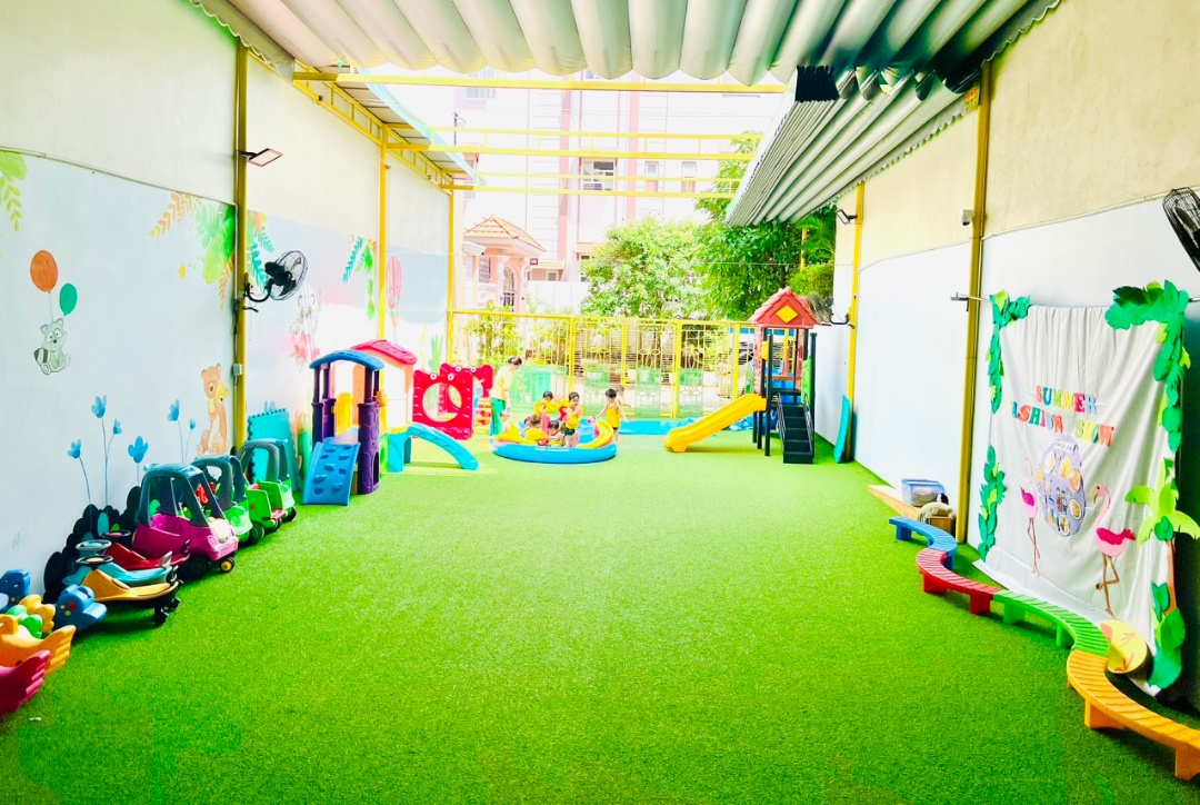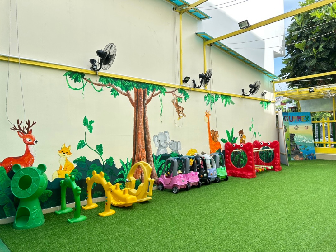 1. Cơ sở vật chất hiện đại, không gian thoáng mát, sạch sẽ; nhiều môi trường khác nhau cho bé hoạt động.